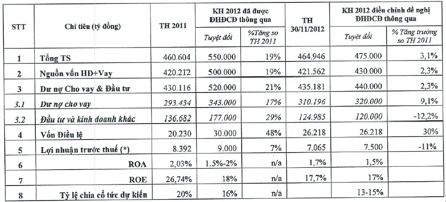 Hội đồng Quản trị Ngân hàng TMCP Công thương Việt Nam đã thông qua Nghị quyết về việc điều chỉnh kế hoạch kinh doanh năm 2012 để lấy ý kiến cổ đông bằng văn bản như sau: